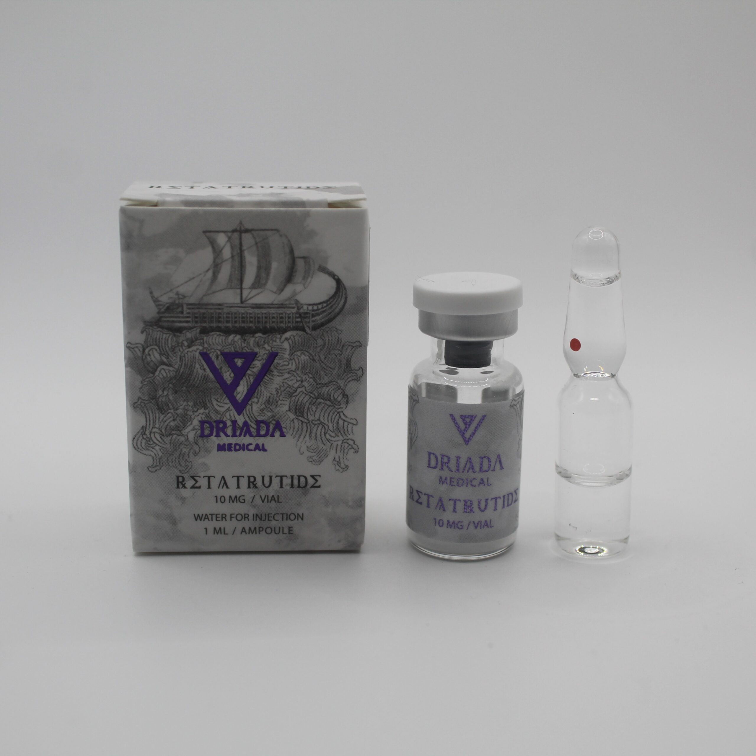 A retatrutida é apresentada em frasco para injetáveis contendo 10 mg de pó liofilizado. Deve ser reconstituído com a água bacteriostática fornecida antes do uso. V