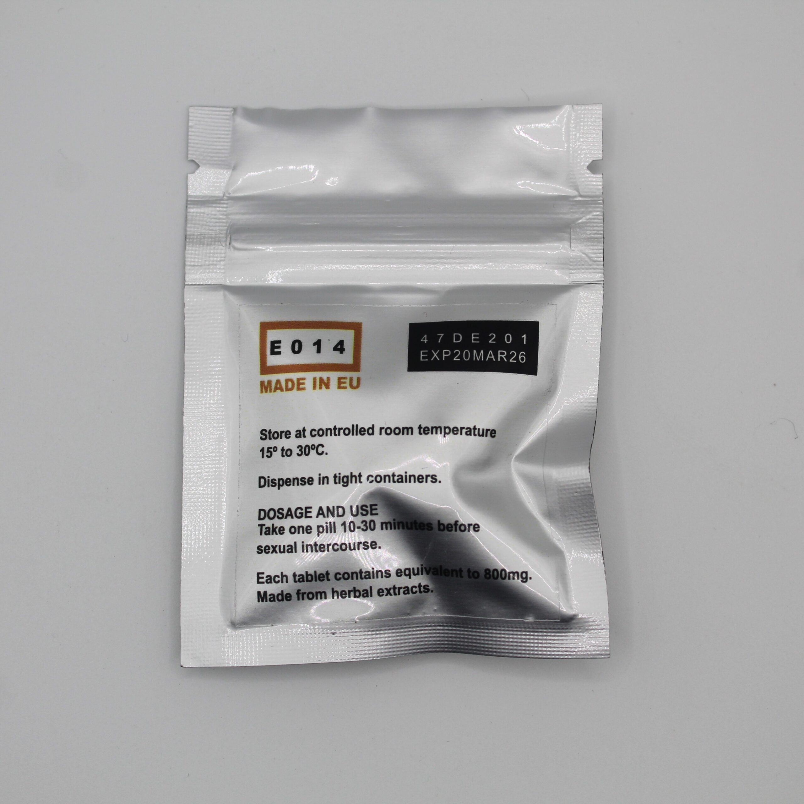Tomar uma cápsula 10 a 30 minutos antes do acto sexual. (O seu efeito prolonga-se por 72horas). Não apresenta efeitos secundários.