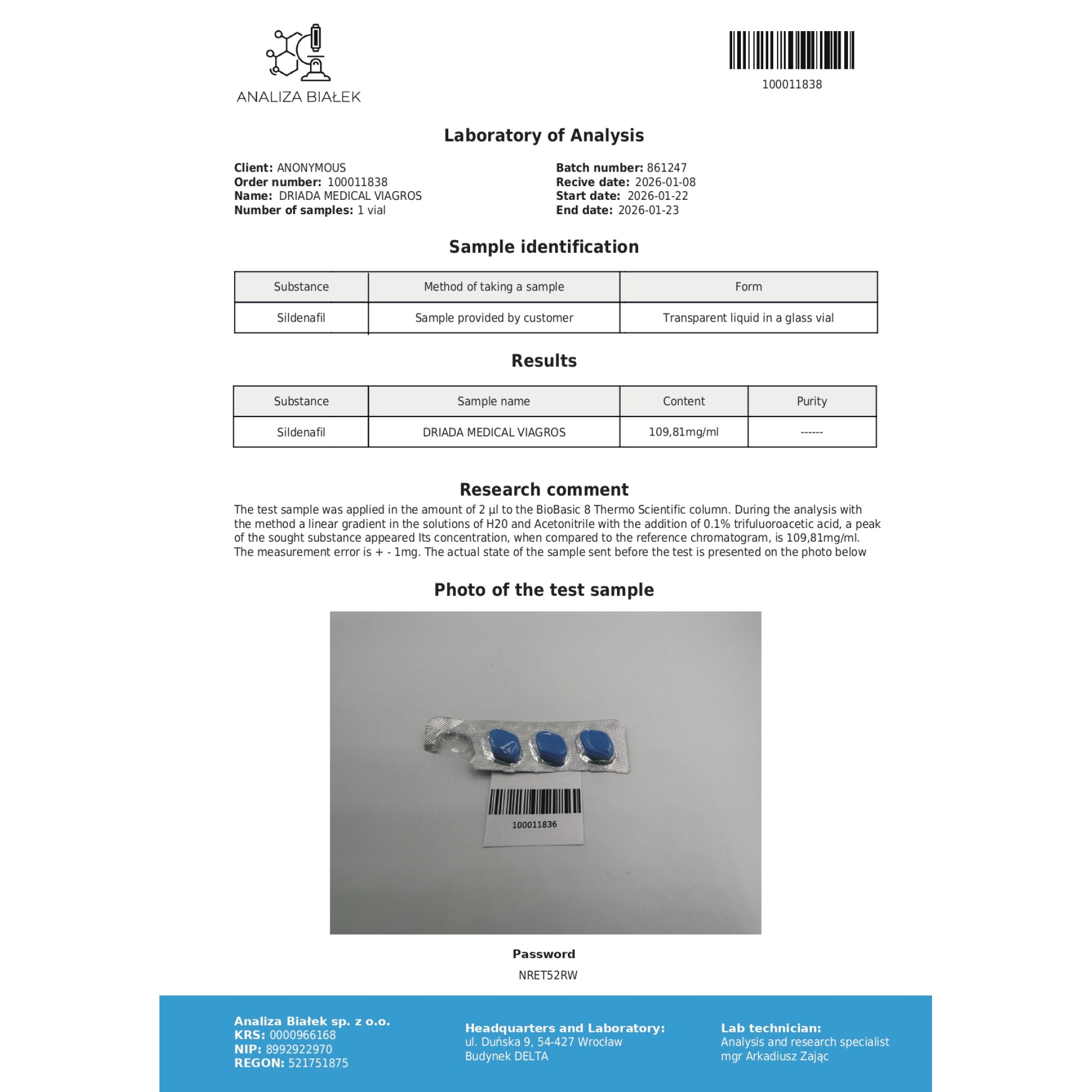 - 100mg de Sildenafil (substância ativa).