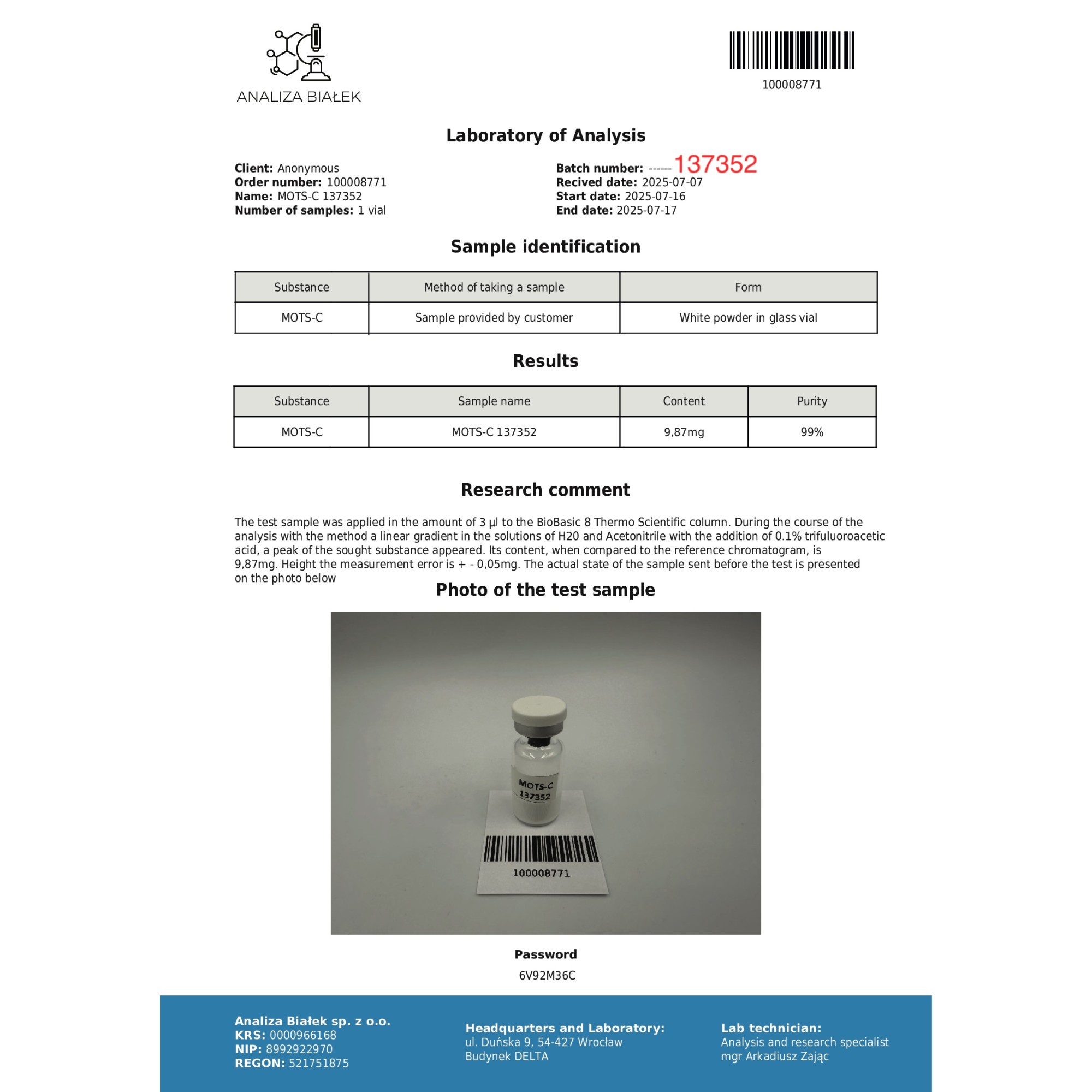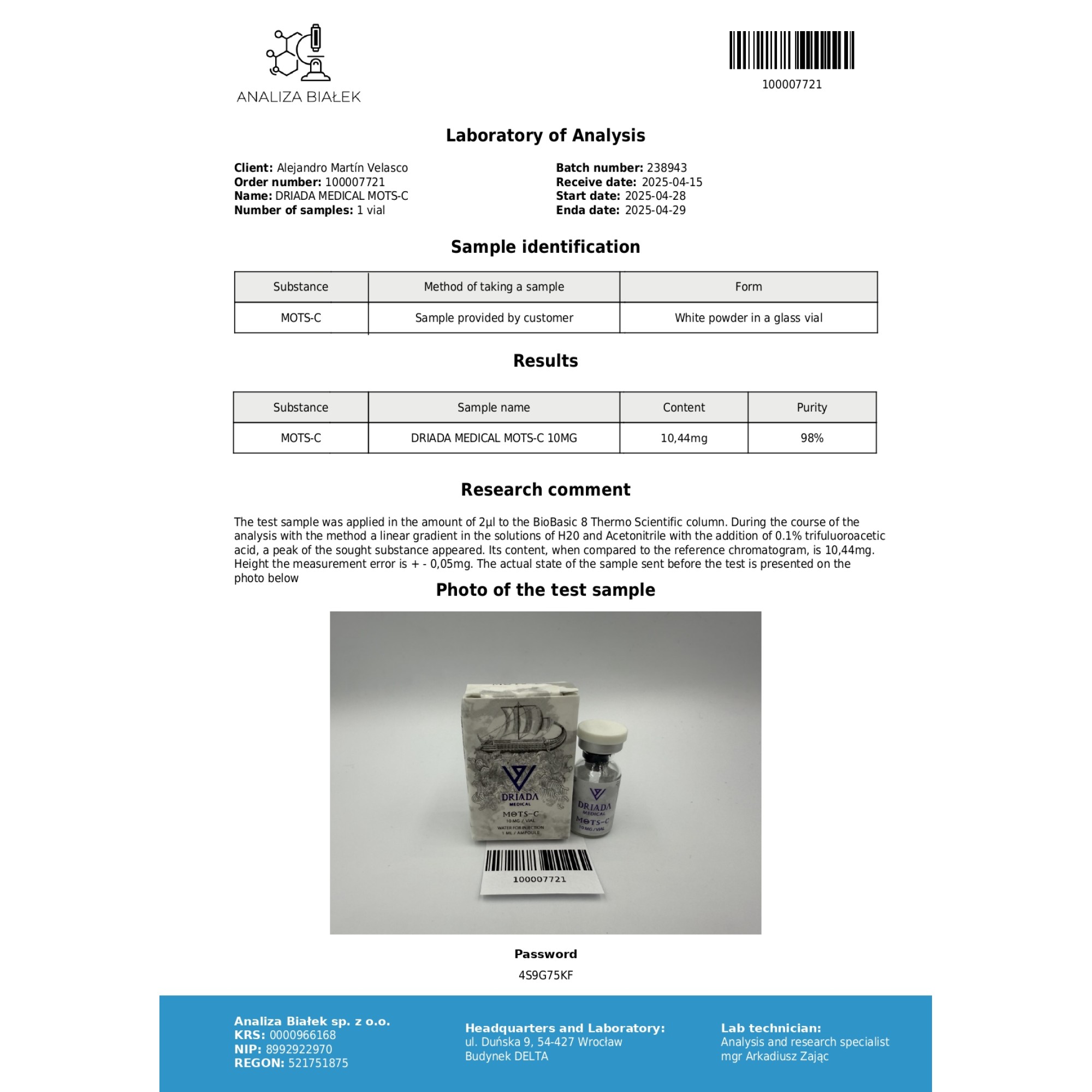 Dose: 10 mg de MOTS-c.